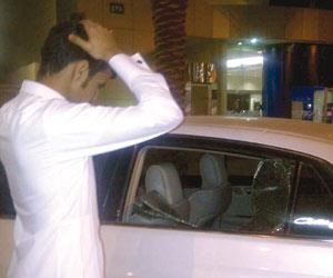 السيارة التي يستقلونها قد كسر زجاجها وتم سرقة حقائبهم التي تحتوي مهر